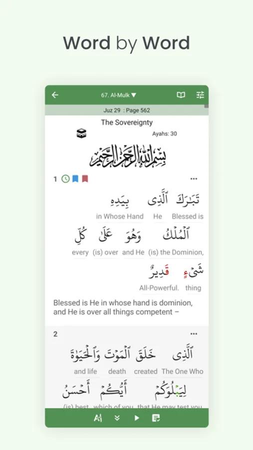 Alhamdulillah! Introducing Al Quran (Tafsir & by Word), the ultimate Quran study tool for all. With features such as a robust audio system with repeat functions to aid in Quran hifz, word-by-word analysis and translations, Tafsir Ibn Kathir, colour-coded tajweed, Quran topics list, bookmark and note-taking with sync, a powerful search, and multiple translations and tafsirs in various languages, this app is packed with everything you need to deepen your understanding of the Quran. Download now and start your journey to a deeper understanding of the Quran with the Al Quran (Tafsir & by Word).