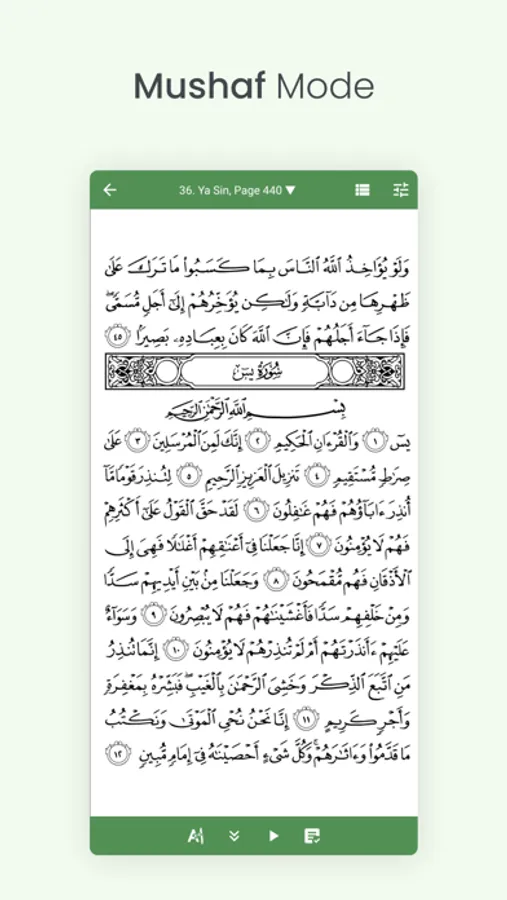 ● Recite Quran in Mushaf mode to have the same experience when reciting from hard-copy Mushaf