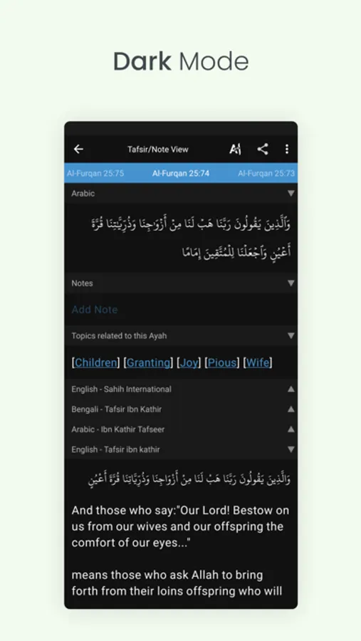 ● Take Notes for each ayah in the Tafsir view