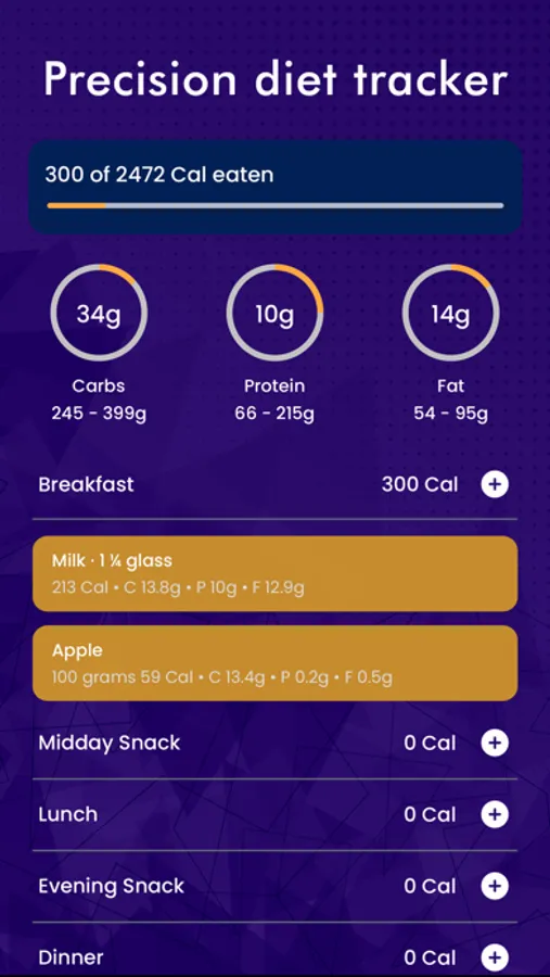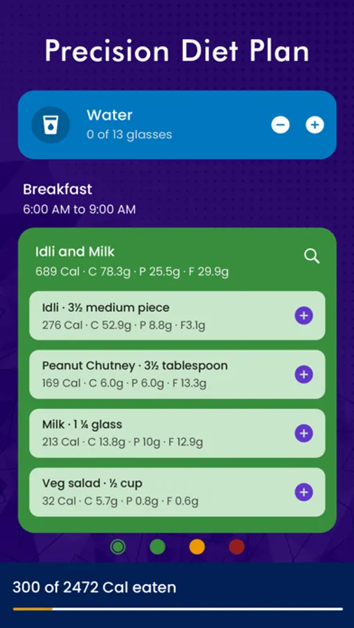 Precision diet tracker allows you to track every food item you eat with precise nutrition information. This helps to follow your diet plan without compromising on your favourite foods.