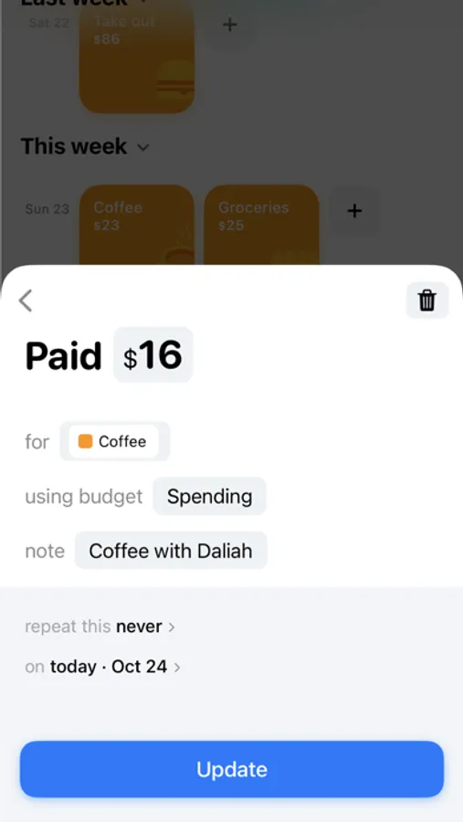 - Enter yesterday’s expenses in 1 tap (or the day before)