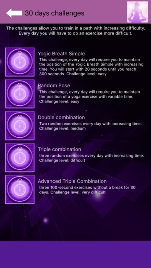 To motivate your path, you can also take a 30 days yoga challenge and check your exercises achievements, day by day.