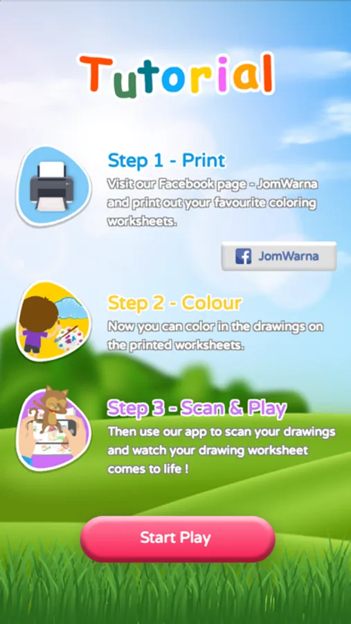 JomWarna is an augmented reality colouring book app to allow people of all ages to enjoy- taking colouring to another level of fun! Download the sheets from our facebook page, get those colouring tools out and watch your artwork come to life with this app!