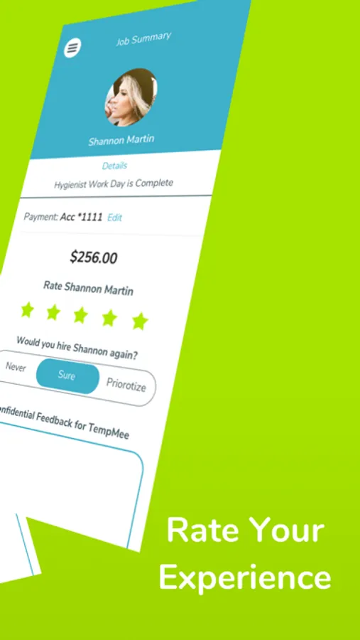 Safety & security: From OAI and malpractice for professional users to verified and reviewed offices, TempMee users can feel safe expanding their careers.