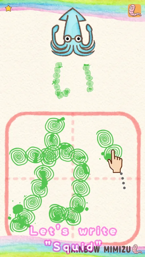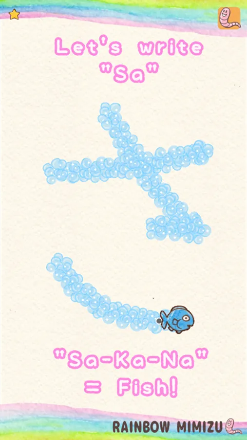 By tracing dashed line, your child learn to write perfect Hiragana, all while receiving encouragement from cute characters!