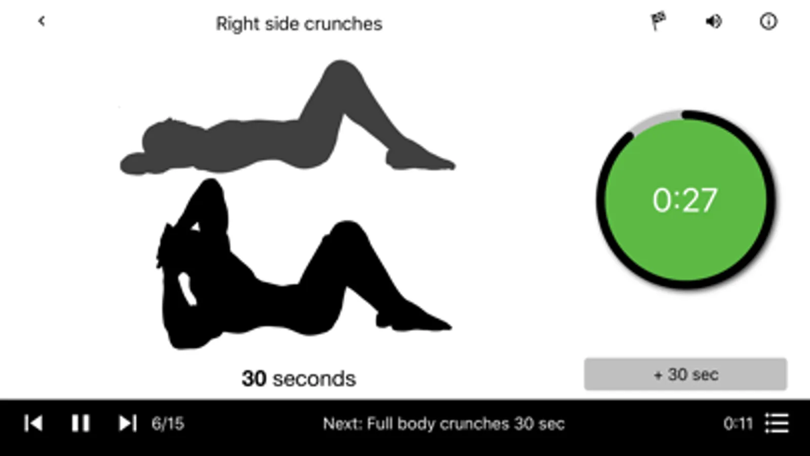 The trainer will be very useful during the training. You do not need to detect the time, think what the next exercise is, or how many reps should be done. All the necessary information is displayed on the screen, and the necessary events are accompanied by sound and voice notifications.