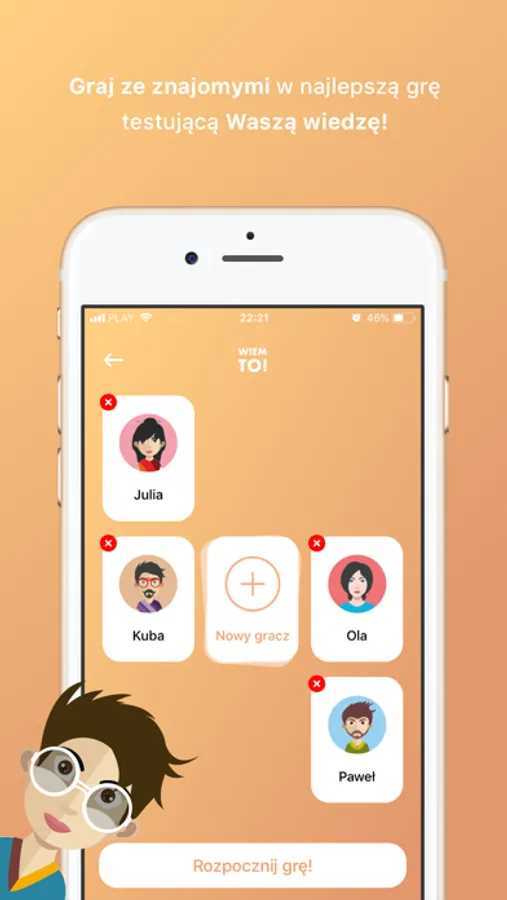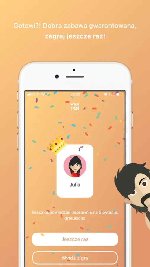 Gra korzysta z połączenia internetowego w celu pobierania nowych pytań, które regularnie będą dodawane do aplikacji. Będzie to robić szybko i po cichu, gdy włączysz aplikację wzbogacając grę o nowe treści.