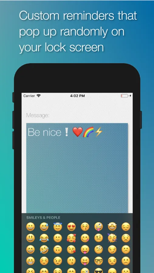 Remind and motivate yourself with this simple, 100% free, and super easy-to-use app that pops up your own custom messages straight onto your home or lock screen, delivered randomly throughout your day.