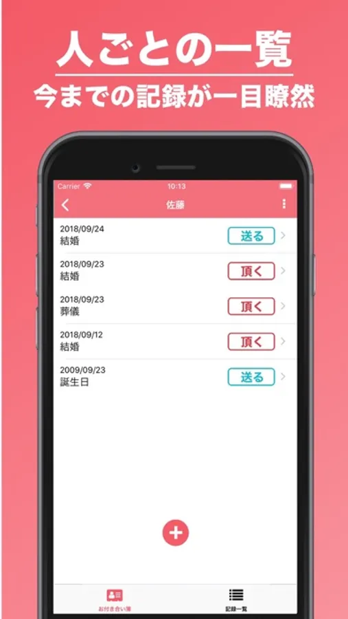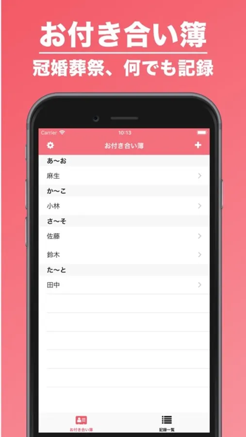 お付き合い簿は、様々な記念や贈答のやりとりを記録できる無料のアプリです。