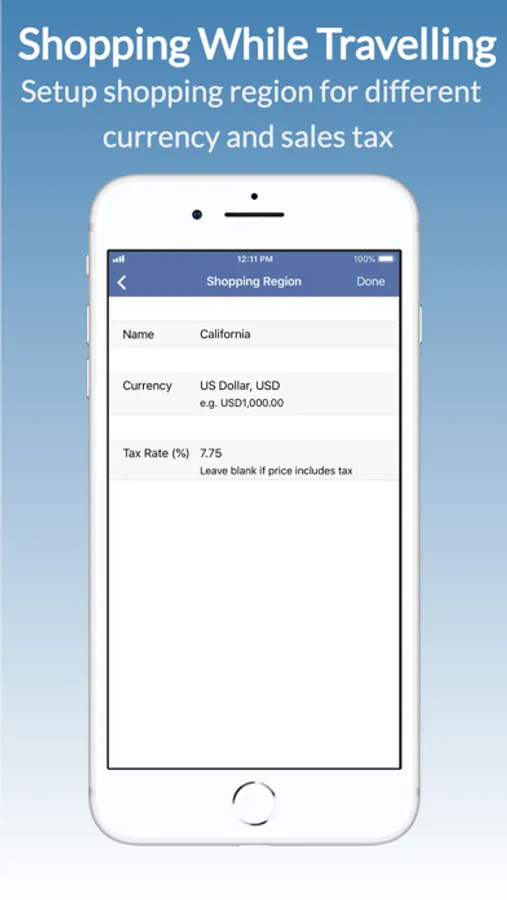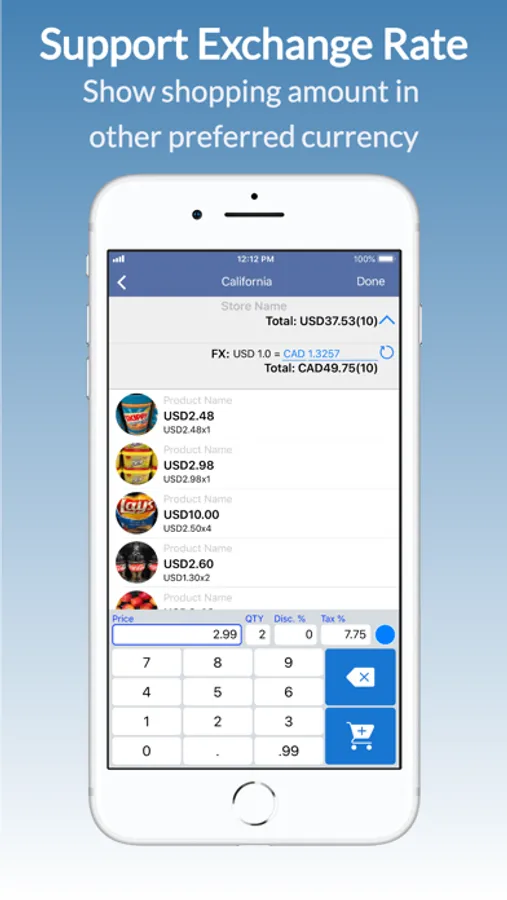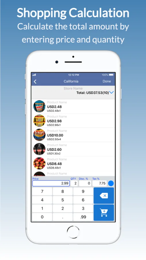 Simple Shopping Calculator allows you to quickly create the shopping list and keep track of your total amount as you shop. It calculates the total of your shopping list based on the item price and quantity. You can also enter the discount rate and the sales tax rate for each item. It supports multiple shopping regions that can have localized currency format and sales tax rate for different state, province, country or region.