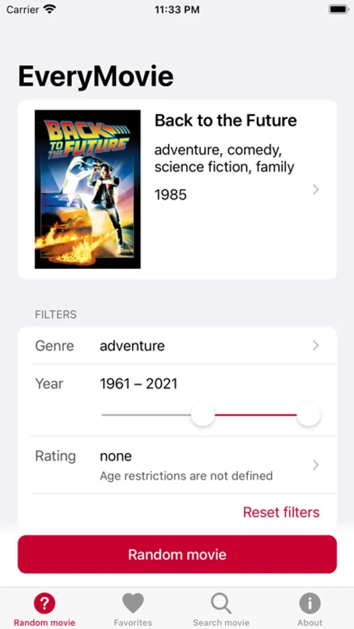 The app will save your time because for the selection of a random movie you need to press only one button.