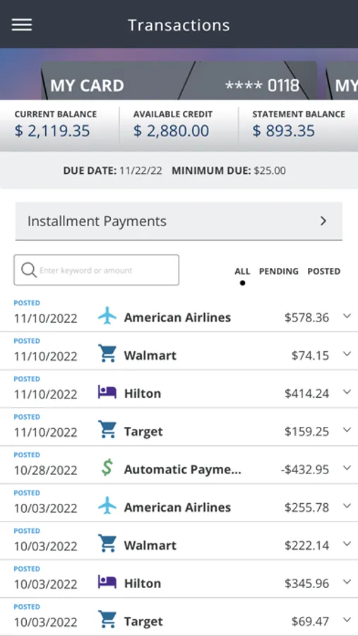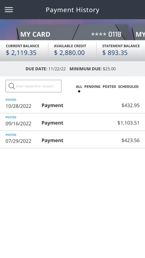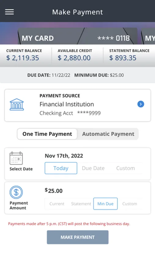 * Schedule and confirm payments from checking or savings; see payment amounts for balances and