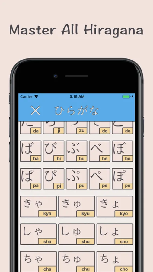 You'll learning all Hiragana via each checkpoints, and master all Hiragana unconsciously.