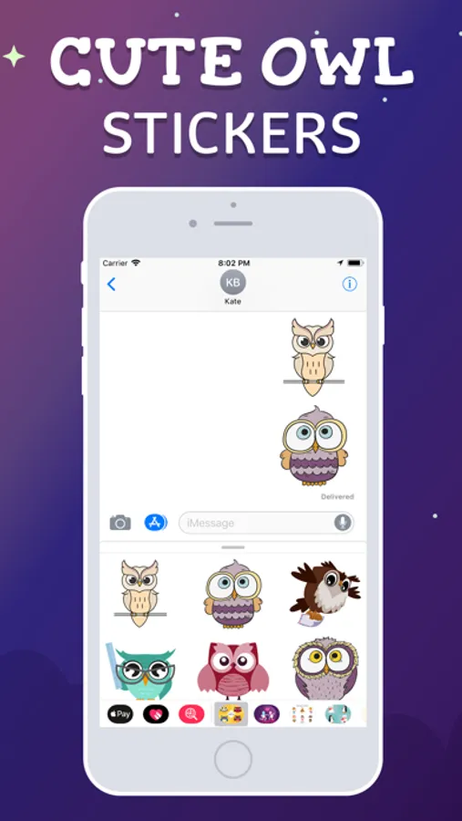• Tap the icon on the lower left corner and then the plus icon to access the App Store for iMessage. Tap Manage tab and find Cute Owl Emojis to add it.