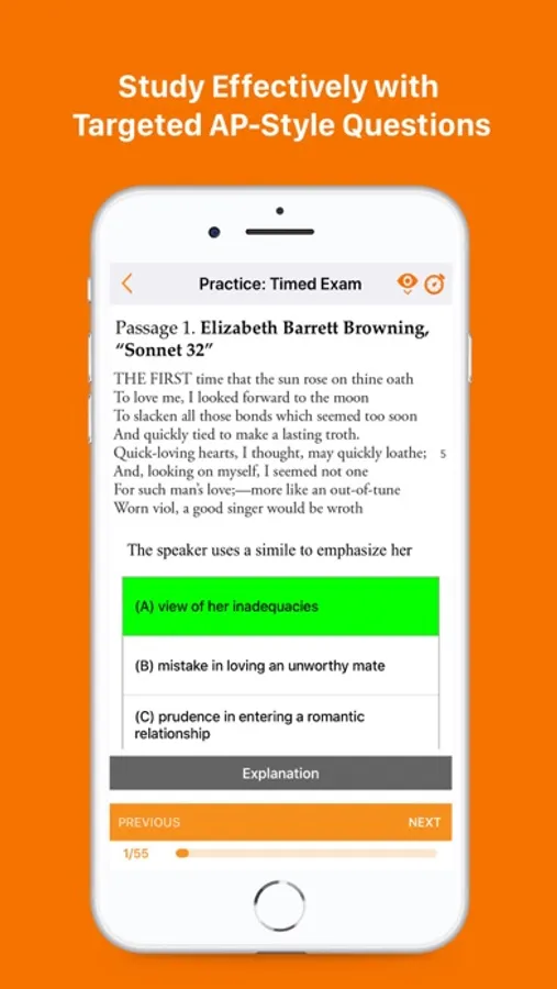 -In the Timed Exam mode, time yourself and review the answers after the time is up.