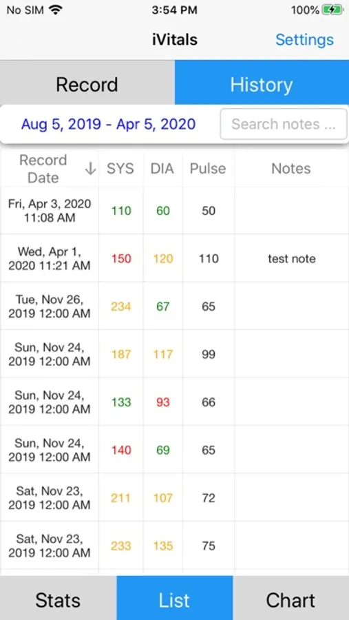 Blood pressure records can be added and managed via our smart phone apps and also directly on www.ivitals.net