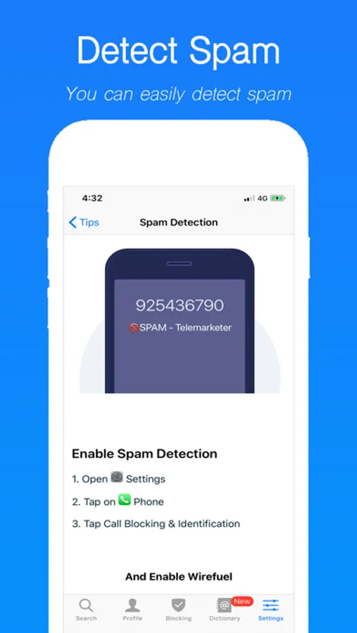 With a based spam list from the entire internet, Wirefuel can identify and block spammers and fraud calls automatically.