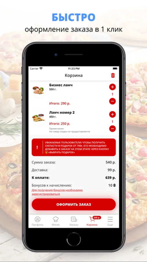 Скачивайте наше приложение, оформляйте заказ и наслаждайтесь изысканной едой, где бы Вы ни были! Приятного аппетита!