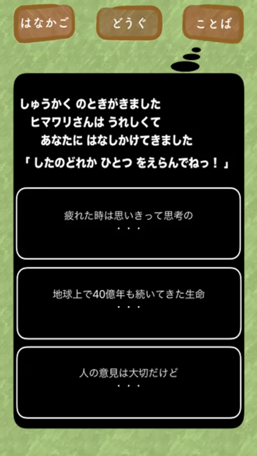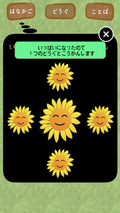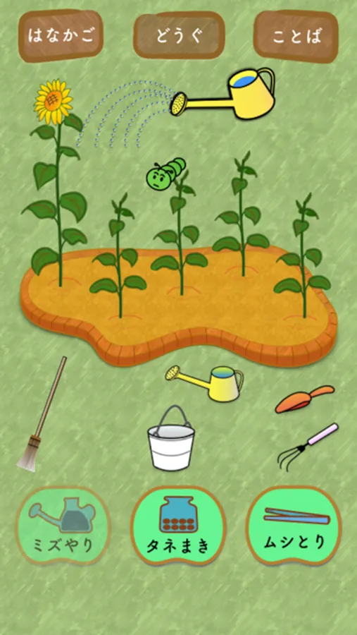 ・画面下部の3つのボタンを使い、花壇でヒマワリ