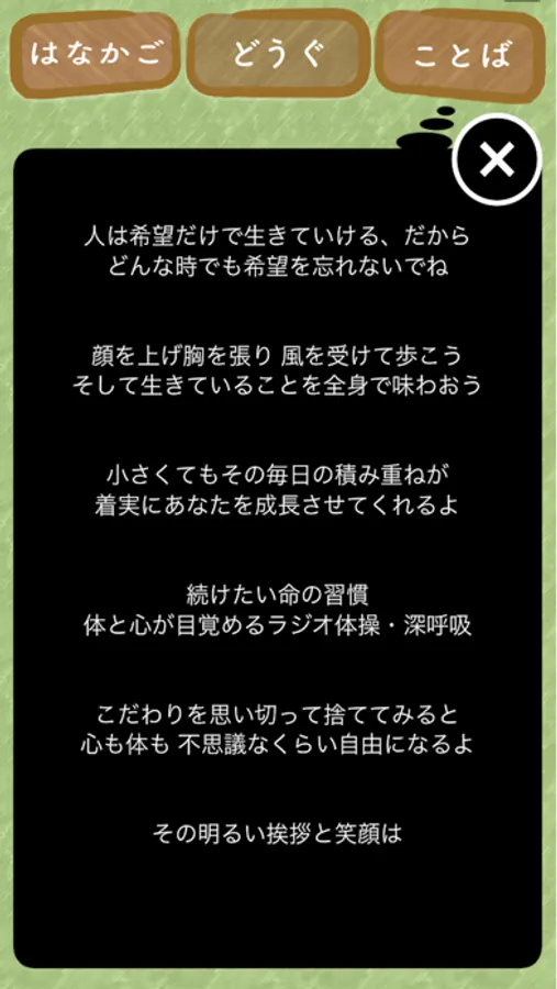 「どうぐ」 :集めたガーデニング道具の一覧画面