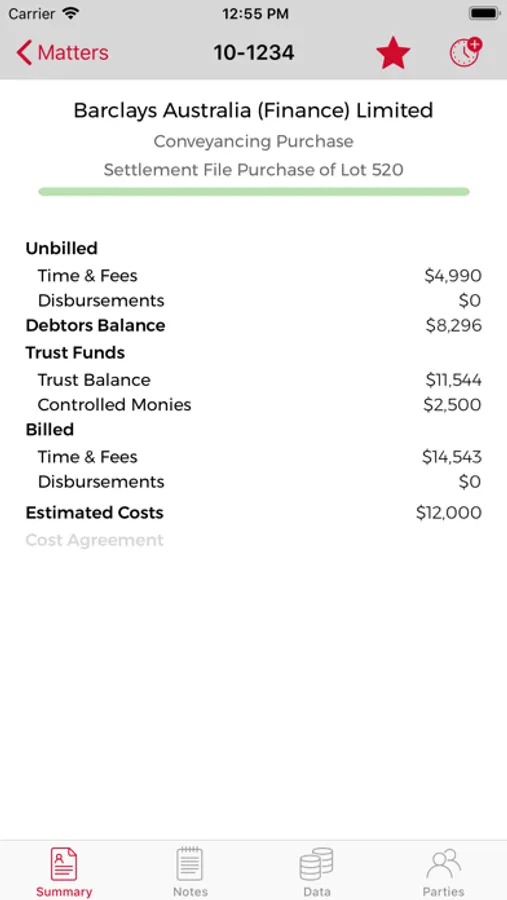 • Easily access matter information such as financials, contacts, key dates and more