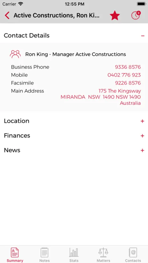 • Find client information at the tap of a button: summary financials, market information, matters, contacts