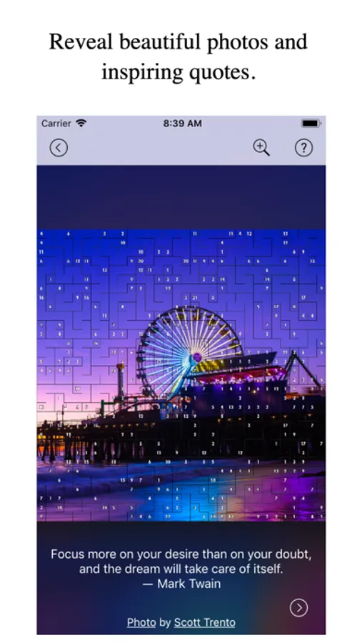 Once you get in the flow you’ll find it hard to tear yourself away from this relaxing and addictive puzzle game. In the distracted world we live in, focusing your mind on challenging puzzles can relieve stress and inspire you to think creatively. Sharpen your mind while connecting the dots to reveal gorgeous photographic images.