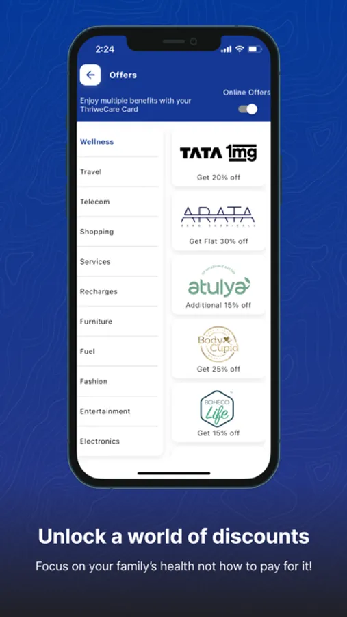 We are the first to provide Visa powered Health Card partnered with Banks and payment Banks, wherein you get offers and discounts not only on the health spends but also on lifestyle, social and other spends.