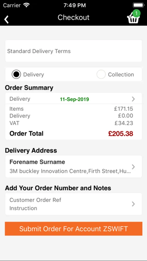 4. Place your order, then click and submit (partial orders can also be saved in the cloud to finish at a later date, on any compatible device)
