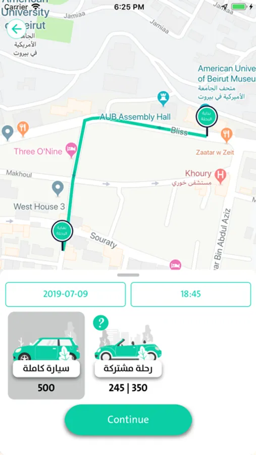 عن طريقنا رح تقدر تحجز مقعد بسيارة و تتشارك الرحلة مع أشخاص على طريقك أو حجز سيارة كاملة مع شركائنا السائقين بالإضافة لميزة الاشتراك .
