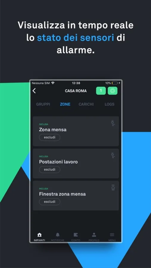 • Controlla lo stato dell'impianto (intrusioni, manomissioni, eventuali guasti, ecc...)