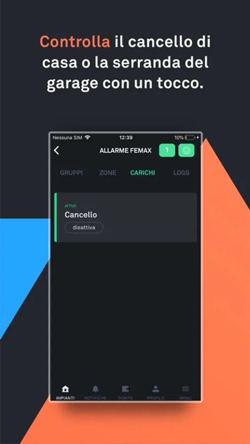 • Comanda direttamente i tuoi carici (cancello, portone, luci, ecc...)