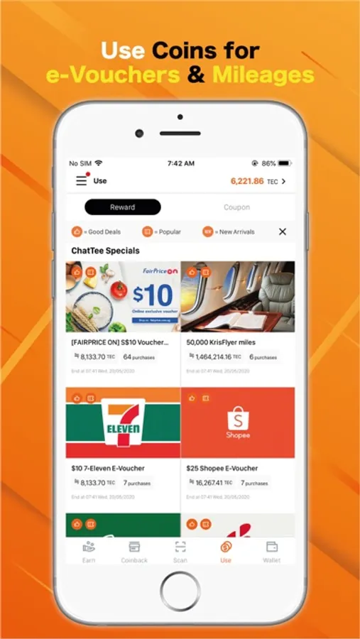 There are many ways to earn coins. Coins are rewarded when you check-in to our merchant outlets, shop there, and write a review, or simply just log in daily to our app, click on in-app banners, and refer our app to your friends. There are more events and giveaways too, so stay tuned.