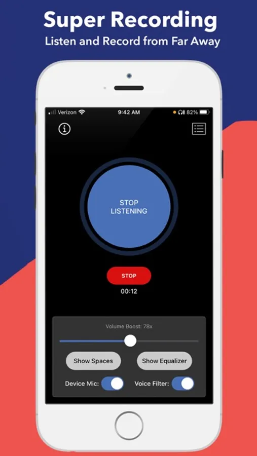 Hear Boost gives you enhanced hearing and recording ability to easily capture far away conversations and sounds. Hear the world around you in an enhanced way like you may have never heard it before. Listen and record up to 200x what your microphone normally delivers. Choose from any microphone input.