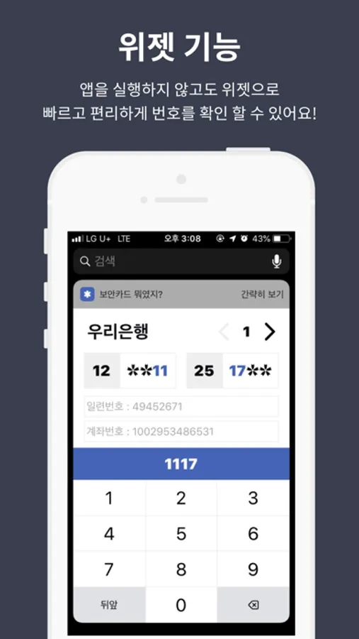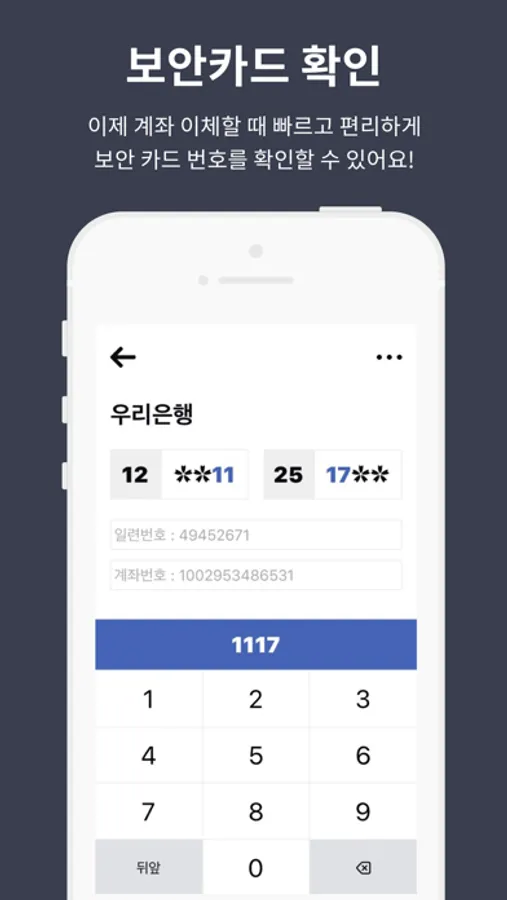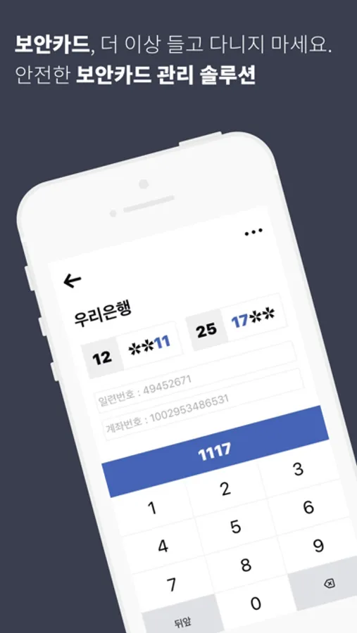 보안카드 뭐였지?는 편리하고 안전하게 보안카드를 관리해주는 솔루션입니다.