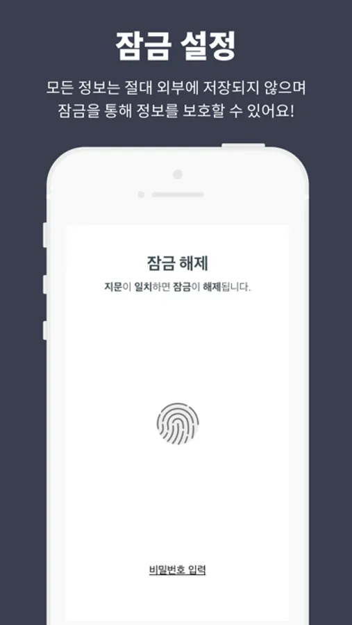 - 백그라운드 진입시 10초 후 자동 잠금 기능