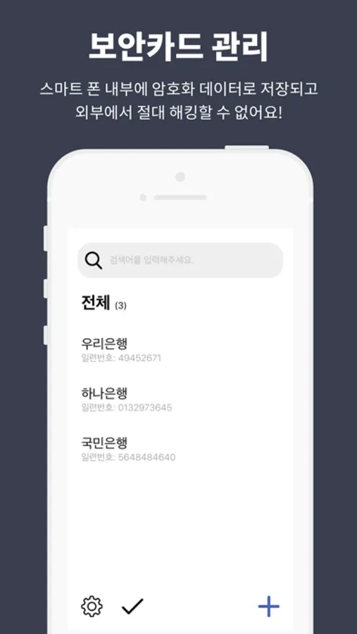 마스터 비밀번호 하나로 모든 보안카드를 관리해보세요!