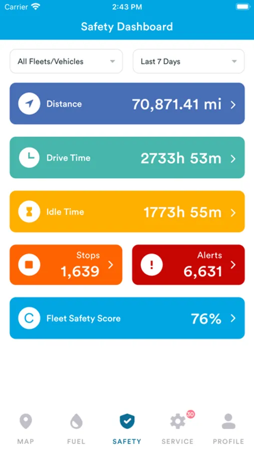 In the palm of your hand, you have deep insights for each vehicle's performance, drivers’ activity, maintenance reports, and you can even, investigate incidents in the field whether you're in the office or at the airport!