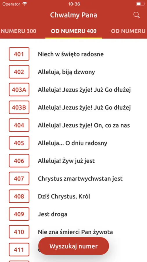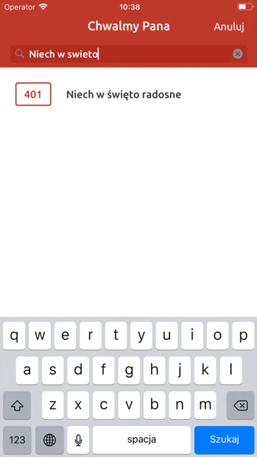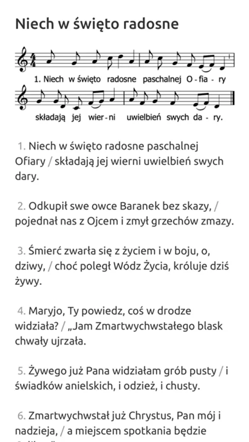 Aplikacja zawiera w chwili obecnej podstawowe modlitwy, pieśni na okresy adwentu, Bożego Narodzenia, Wielkiego Postu i okresu wielkanocnego, jak również pieśni okolicznościowe, pieśni żałobne oraz hymny. Kolejne modlitwy i pieśni zostaną w aplikacji stopniowo dopełnione.