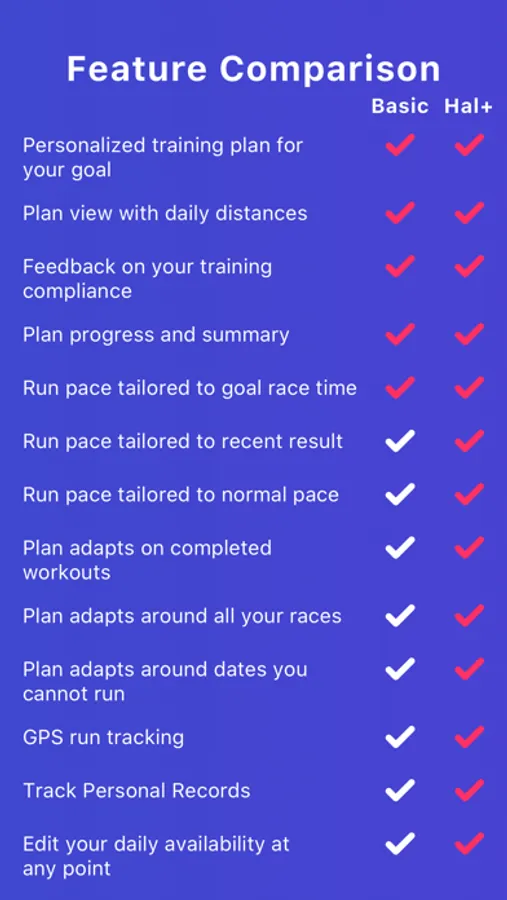 Hal chooses the perfect plan for you based upon your goals and experience, then he crafts your personalized schedule. Your plan will incorporate the most important workouts on the days you’re able to run. Plus, the plan is always adapting to changes in your schedule, fitness, and goals. Hal can even adapt your plan around times when you can’t run (vacation) and incorporate additional events that you’ve signed up for. Once you finish your first plan, you can choose your next goal and Hal will create a brand new plan for you. All of your workouts will give you specific details of how fast and long to run, and you will get daily helpful tips from Hal to help you reach your goals and learn about running.
