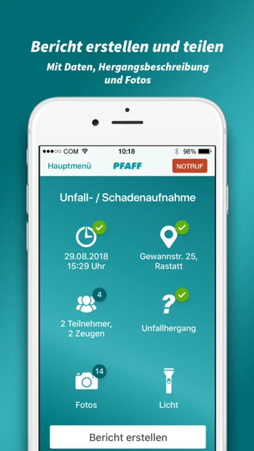 Danke, dass Sie den PFAFF Unfall-Helfer verwenden!