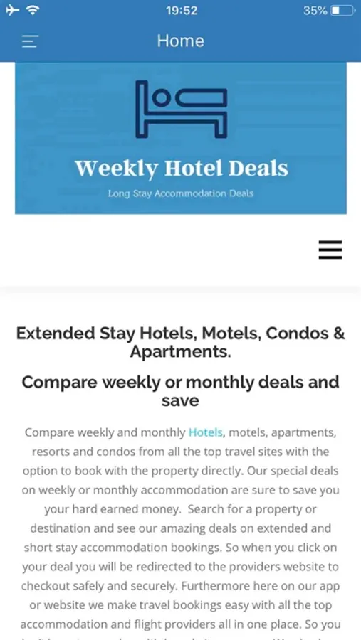 • Thousands of weekly or monthly deals on hotels, motels, apartments, and villas