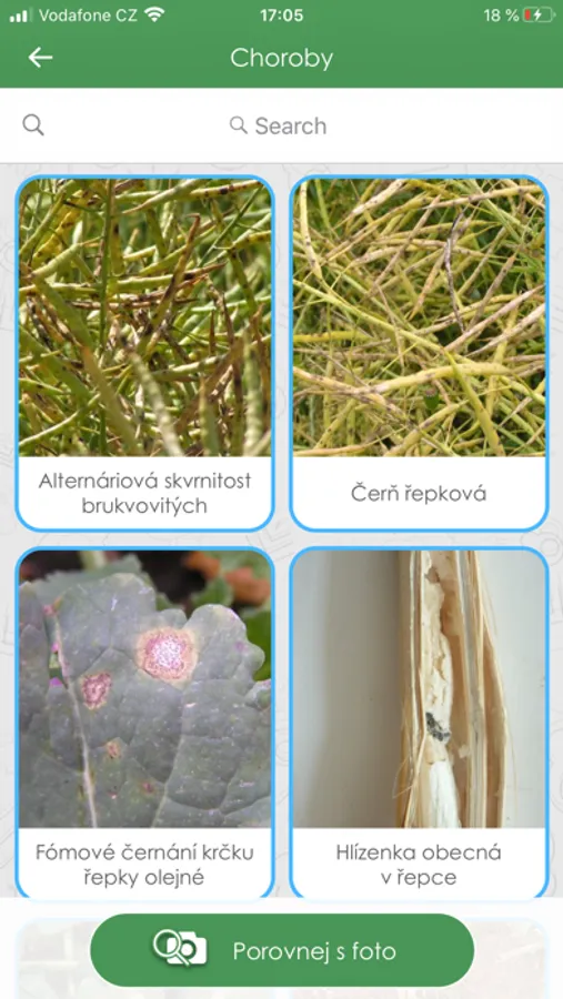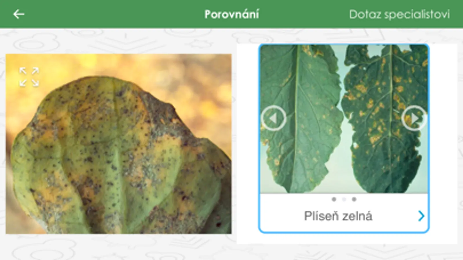 V případě, že si farmář není jistý, jaká choroba, plevel či škůdce se na jeho poli vyskytují, může si svůj předpoklad/hypotézu ověřit porovnáním s databází bezmála 150 nejčastějších fytopatologických problémů, které mohou v pěstovaných kulturách škodit.