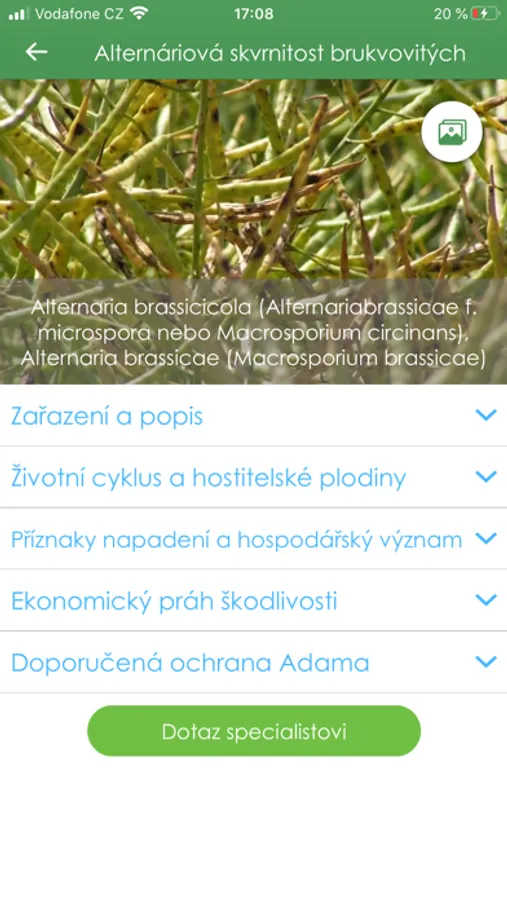 Aplikaci obsahuje funkci Odeslat dotaz. Náš zkušený expert na základě zaslaných fotografií a popisu pomůže určit, o jaký problém se jedná a jaké může být jeho řešení.