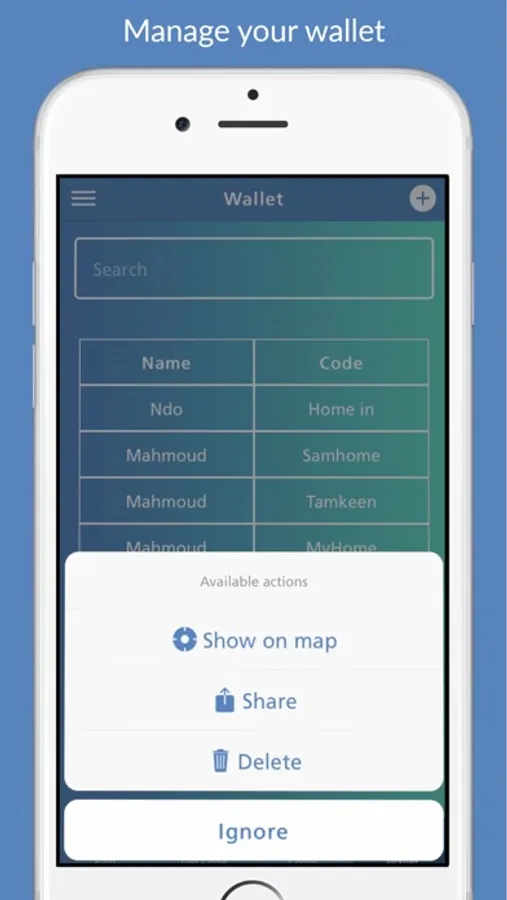 Choose easy remembered words or numbers to be your code, link it to your home, office, sport club, ..etc. then share it with any one so they can get to your location easily.