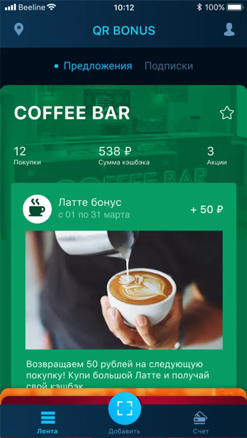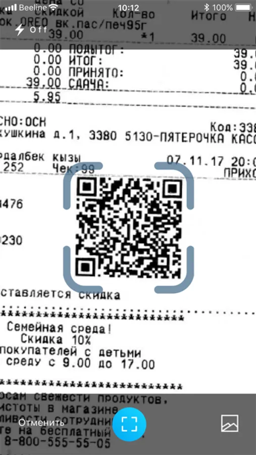 Сканируйте QR код в кассовом чеке - добавляйте любимые кафе и заведения.