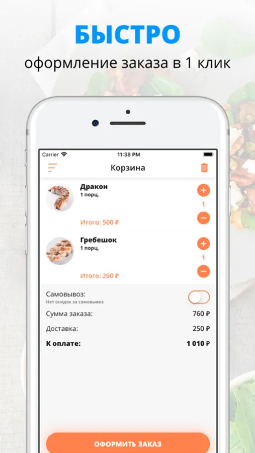 - История заказов. Смотрите, что и когда вы заказывали и заказывайте снова!