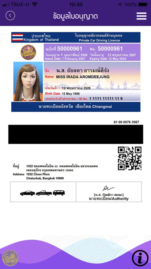 - การแสดง QR CODE ประจำใบอนุญาตขับรถ เพื่อประโยชน์ในการตรวจสอบข้อมูล