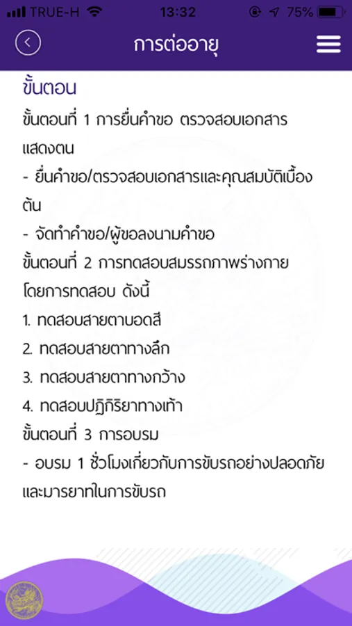 - ให้ข้อมูลเกี่ยวกับการต่ออายุ, การเปลี่ยนประเภท/เปลี่ยนชนิด ใบอนุญาตชนิดต่างๆ