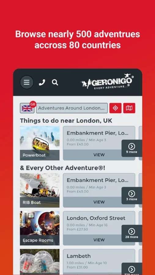 The list of adventures and exciting experience days available include -